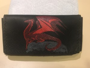 Phone Case Pouch style Phone Case with elastic side panels and Hand Tooled and dyed Dragon Like Loading...